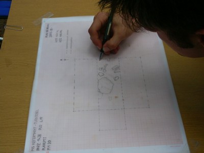 | Zentimetergenau dokumentiert Johannes Hackl die Oberfläche eines Suchschnittes. | |