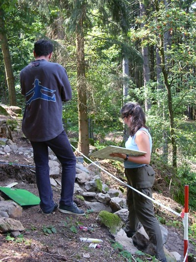Einen Mauerversturz zeichnerisch festzuhalten, ist Aufgabe unserer „Zeichenprofessorin“ Kristina. |