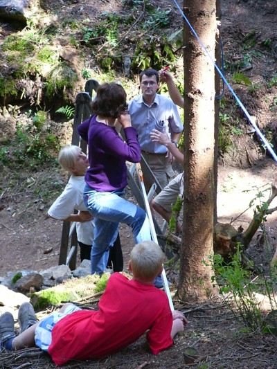 | Mit vereinten Kräften werden auch schwierige Vermessungsaufgaben gelöst. | |