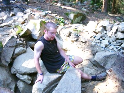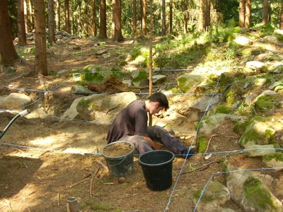 | Am ehesten drückt dieses Bild die entspannte Stimmung eines Grabungsnachmittages aus; im Suchschnitt Johannes. | |