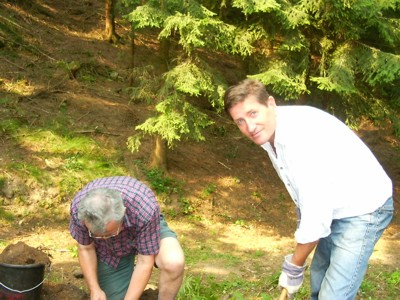 | Hermann Barth und Otto Ruhsam beim Freilegen von Mauerresten im Nordturmbereich | |