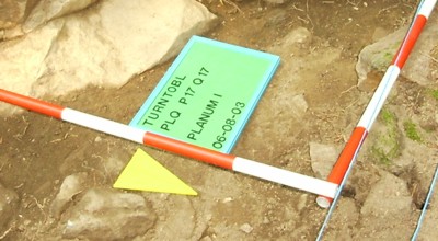 Professionelle Vermessungen und genaue Dokumentation im Gipfelbereich durch unseren englischen Archäologen Jon Digby. |