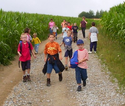 führte die Gruppe von 15 Kindern in Begleitung zweier Erwachsener