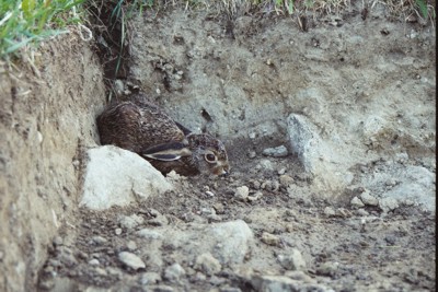 Im Morgengrauen eine Begegnung der animalischen Art: Nicht weniger als zwei Stunden beobachete das Häschen erstaunt die Kulturlandveränderung.