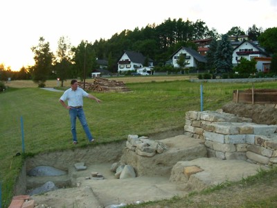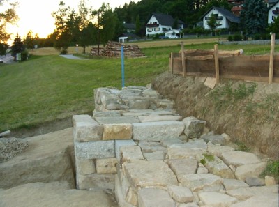 Sa, 5. Juli: Eine Stützmauer beginnt Formen anzunehmen.